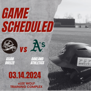またアジアンブリーズのオークランド・アスレチックスとの対戦は、過去に2022年に1度、今回で2度目になります。