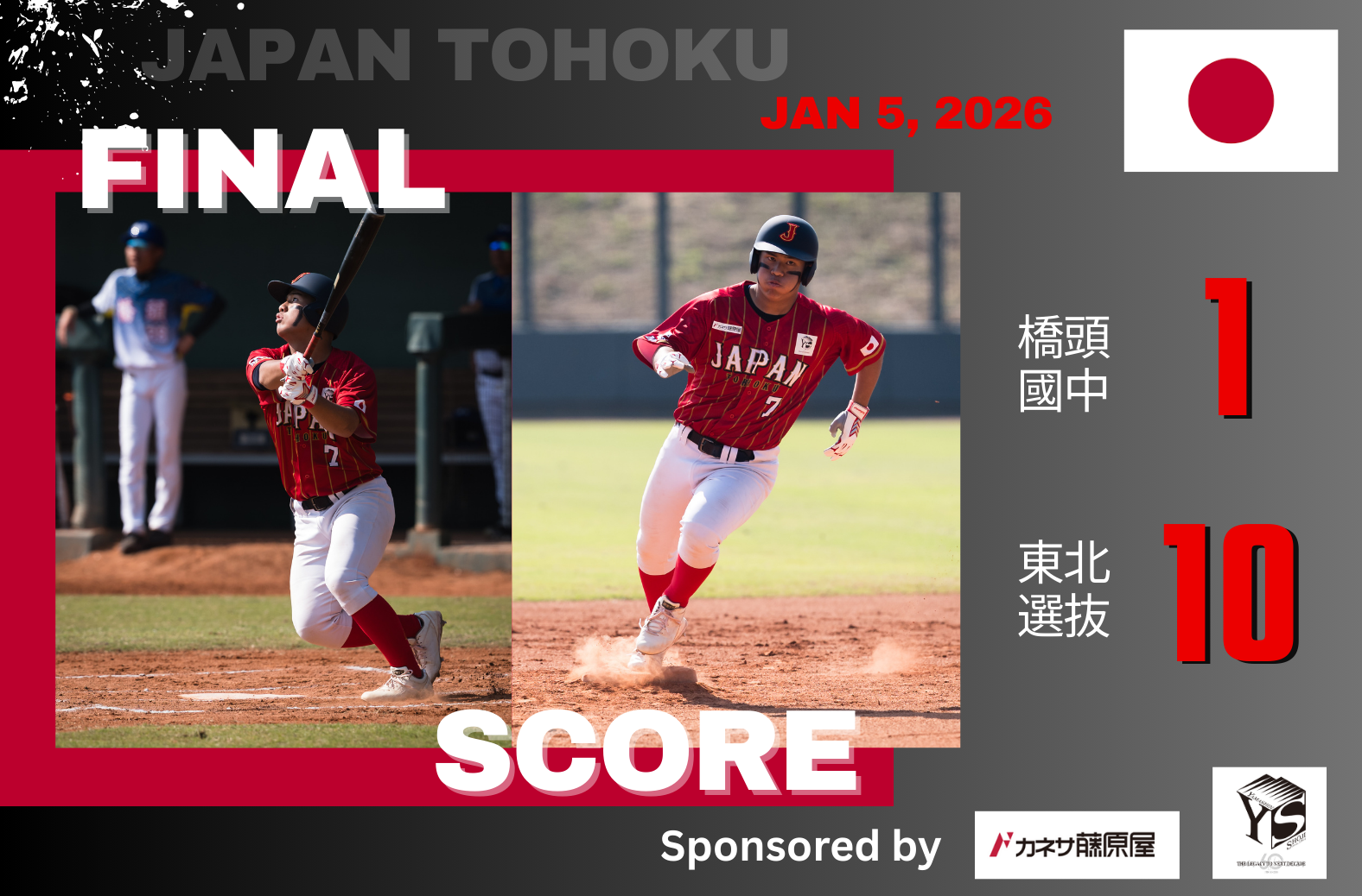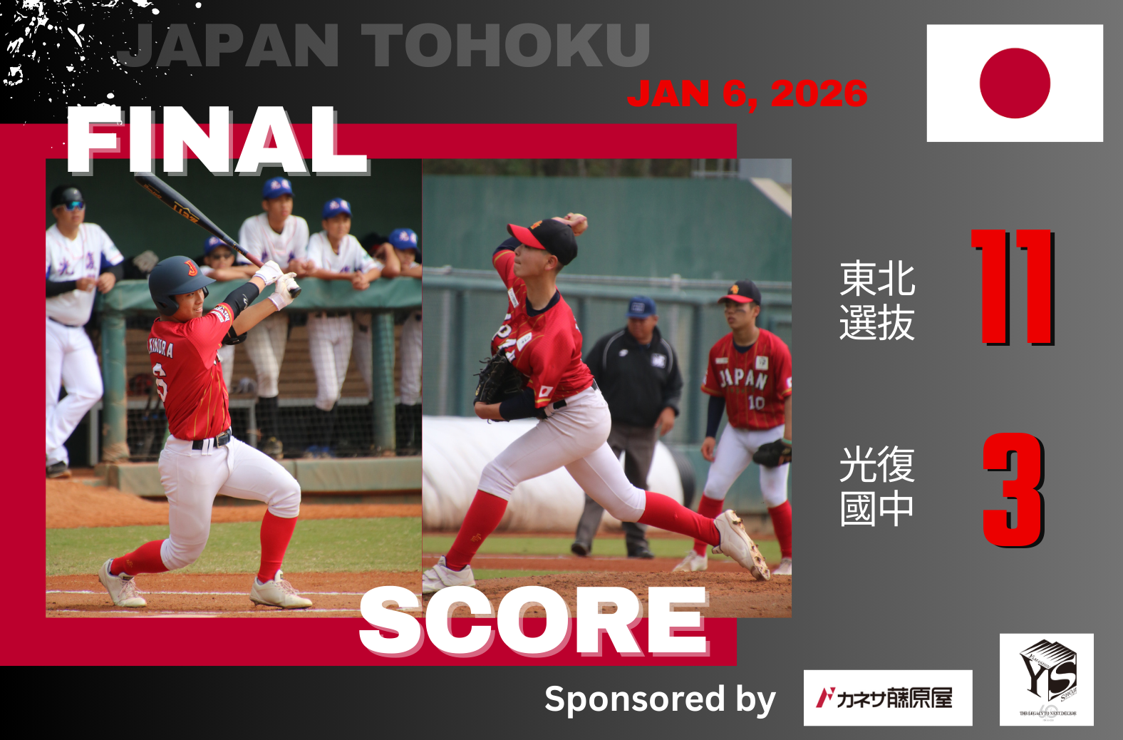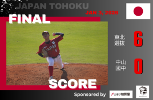 試合は投打がかみ合った展開となり、ボーイズ東北選抜チームが7回6-0で勝利。
